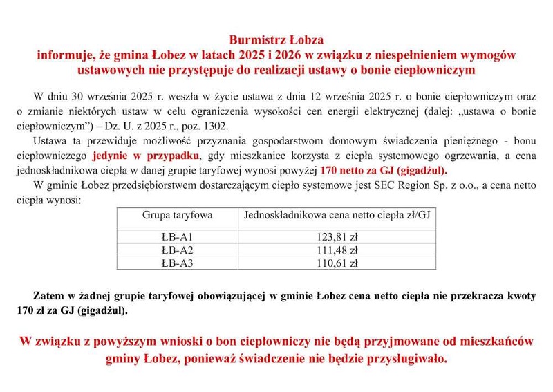 W związku z powyższym, LOKATORZY ZAMIESZKUJĄCY ZASOBY SPÓŁDZIELNI NIE SĄ UPRAWNIENI DO UBIEGANIA SIĘ O BON CIEPŁOWNICZY.